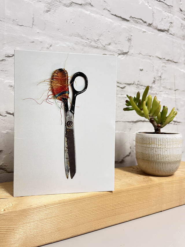 A pack of six greeting cards depicting a range of woven and bound domestic objects.