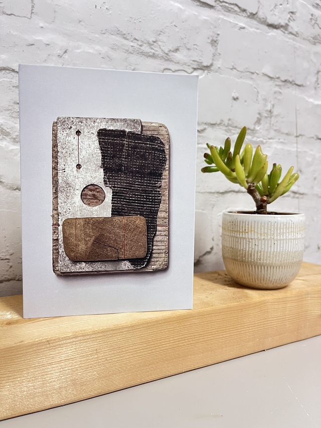 A pack of six greeting cards depicting a range of unique sculpture and assemblage made with found objects and materials sourced from the coastline of Anglesey.